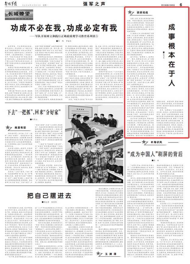 其实,“成事在人”不仅仅局限于对天候、天时这一自然条件的判断和利用。在更广泛的作战领域里,从战略家对整个战局的判断,到战术指挥员对战场情况的处置,都有一个未雨绸缪、见机行事、知难而进的问题。我们要想成为战场上的胜者,就应该充分发挥主观能动性、预见性、创造性,秉承不服输、不信邪、不放弃的劲头,穷尽所思、竭尽所能,尽力把各种问题想在前、各项准备做在前,努力做到任尔千变万化、千难万险,我自有应对之法、破解之招。