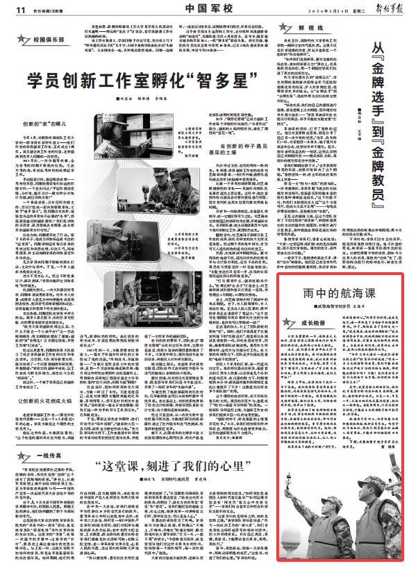 是呀,我望着船上的班长们,他们也穿着厚重的雨衣和救生衣解缆、操舵、进行维护和保养。日复一日,年复一年,无论日晒风吹或暴雨侵袭,他们无一刻懈怠。我突然明白,只有这般刻苦训练,才能在未来的实战考验中拉得出,打得赢。