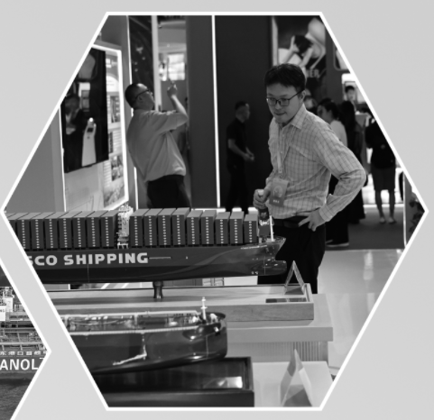 2025年上海国际碳中和博览会上,参观者在一个甲醇双燃料动力集装箱船模型前驻足观看。新华社发