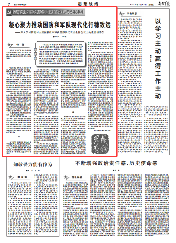 思想战线丨凝心聚力推动国防和军队现代化行稳致远
