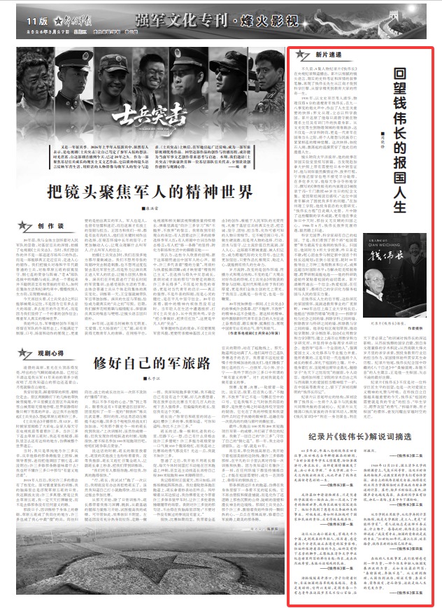 不久前,5集人物纪录片《钱伟长》在央视纪录频道播出。影片以细腻的镜头语言、翔实的史料考证和深情的叙事笔触,再现了钱伟长先生从江南才俊到科学巨擘、从留学精英到教育大家的传奇一生。