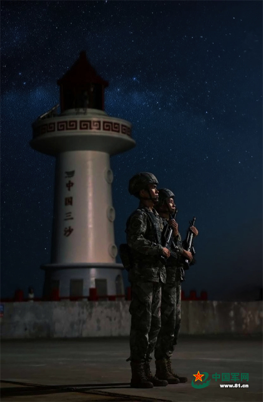 永兴岛上的三沙哨兵,恰似一座座行走的灯塔。他们屹立于风浪最近处,将万丈波涛挡在外面。于是,港湾入梦,渔火归航。彼立于斯,海遂安澜。