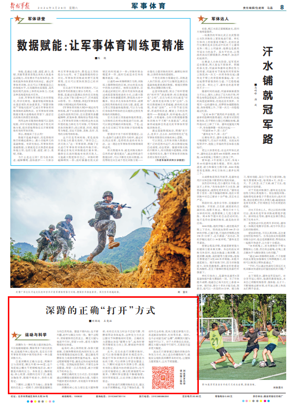 深蹲作为一种经典力量训练动作,不仅能锻炼腿部、臀部等多个部位的肌肉,还能提升核心稳定性,是官兵日常军事体育训练中使用较多的一种力量训练方式。