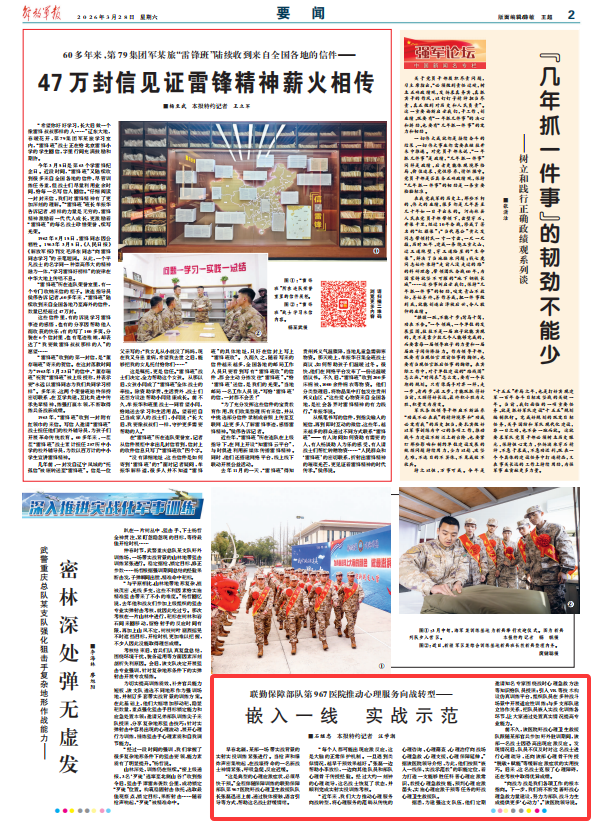 联勤保障部队第967医院推动心理服务向战转型——