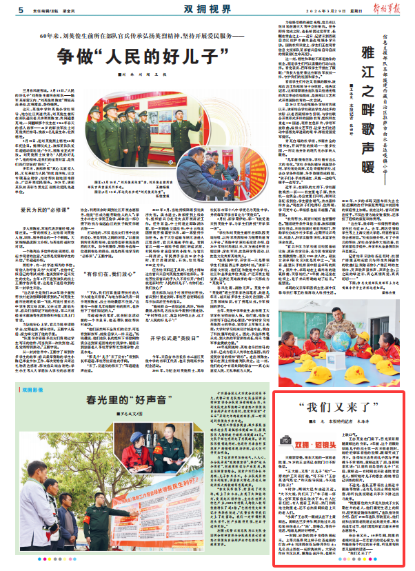 春去春又来。40多年间,院里的老槐树见证一茬茬官兵的爱心接力,始终能在每个约定的日子里,听见那句熟悉又温暖的话语——