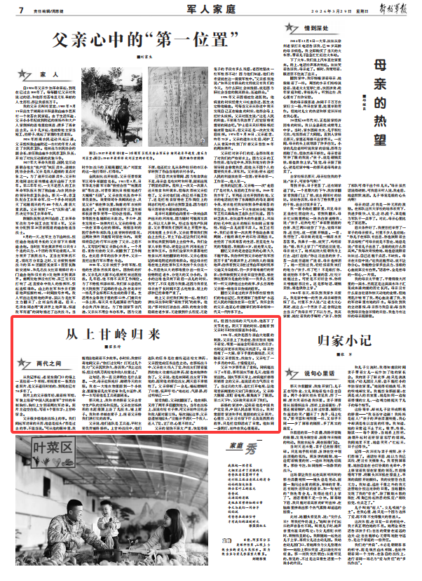 新修的家谱中,记载着他是中国共产党党员、中国人民志愿军战士。我时常翻看家谱和手机里翻拍的父亲照片,心里想,父亲没有留下什么轰轰烈烈的故事,只是把信仰活成了日常。他如同一盏明灯,始终在我心里亮着。