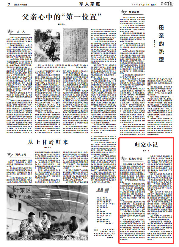 这次休假,在日复一日的相处中,我才真正明白她的不易。她用全部生活告诉孩子们:爸爸的荣誉在遥远的边关;让爸爸能够心无旁骛地驻守远方,是这个家庭的一份责任。