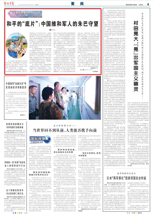 后来,这些影像通过社交媒体传向世界,还有不少外国网友点赞留言。我也更加笃定:自己拍摄的照片和视频早已超越了新闻信息的传递,它们是中国军人践行维和使命的生动注脚,是和平最真实的“底片”。