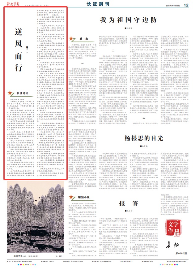 而今,山河锦绣,烟火寻常。我们仿佛不必再渡赤水,似乎不必再闯烽火险滩。可人生在世,谁的前行路上,没有一条看不见的“赤水河”?谁的平凡日子里,没有一阵迎面而来、阻碍脚步的“顶头风”?