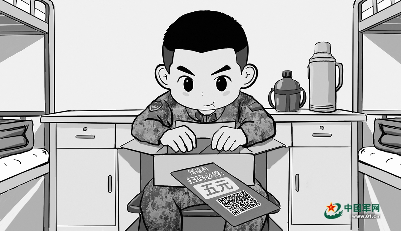 如今,网购成为不少官兵日常购物的一种方式,但快递包裹中有时会夹带以“扫码领红包”或“中奖送赠品”等为名的卡片或礼品券,容易暗藏泄露信息的安全风险,战友们需注意。