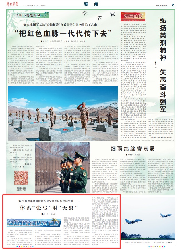 雷达方舱内,屏幕闪烁;防空阵地上,导弹待发……春日高原,第76集团军某旅联合友邻空军部队展开一场协同防空训练。