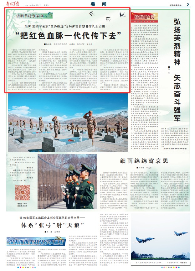 第81集团军某旅“金汤桥连”官兵深情告慰老排长王占山——