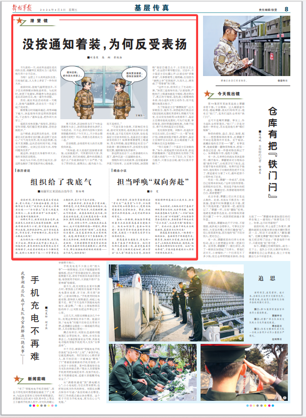 前段时间,团里组织基层主官座谈会,有人问我:“不按通知着装,你怎么敢作这个决定?”说实话,当时我心里确实打鼓——“令行禁止”是军人的基本准则之一,在全团活动中“公然违规”,怎么想都可能挨批评。