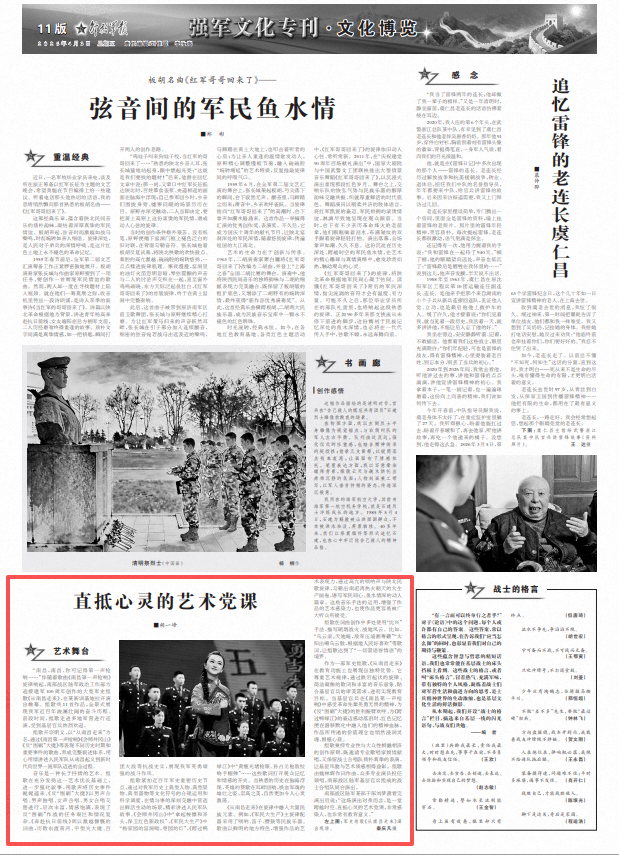 南部战区陆军某部干部刘梦澍看完演出后说:“这场演出对我而言,是一堂跨越时空、直抵心灵的艺术党课,非常感染人,也非常有教育意义。”