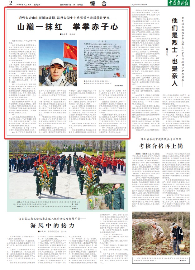 2022年,正在读大学的张景杰报名参军,奔赴西北边陲。两年军旅生涯,让他从懵懂学生蜕变为合格军人,也让他对初心使命有了更深刻的理解。