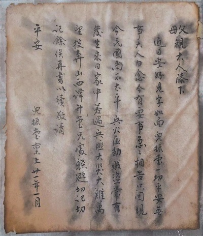 董振堂写给家人的信。作者供图