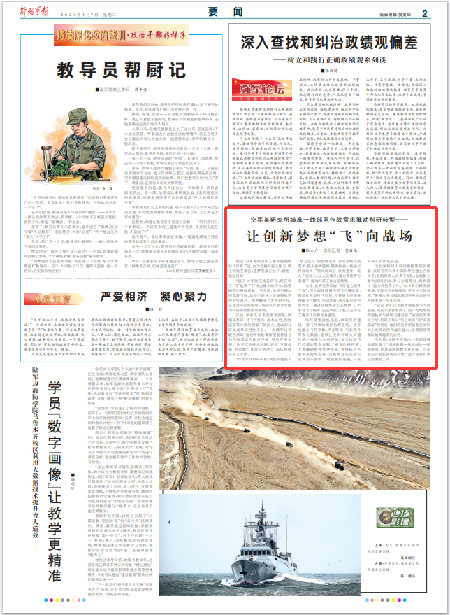 不久前,该研究所推出一套能够帮助部队建立“训练数据—战术战法—指挥决策”闭环链路的数字化系统。空军航空兵某旅试用后反馈:“这才是我们真正需要的工具。”