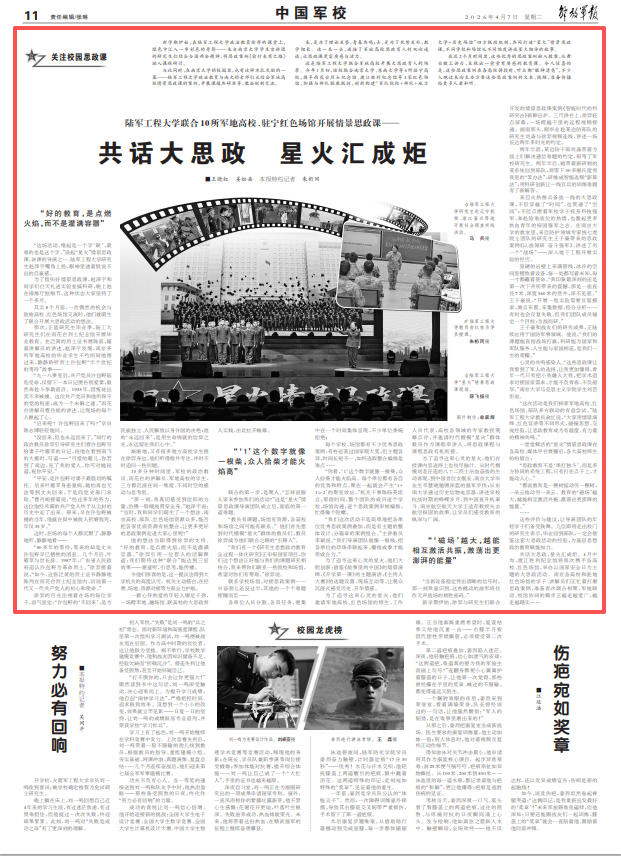 “这次活动是我们探索军地高校、红色场馆、部队多方联动的有益尝试。”陆军工程大学教员俞红说,“大家用情景演绎、红色宣讲等不同形式,碰撞思想、交流经验,让思政教育成为有温度、有力量的精神共鸣。”