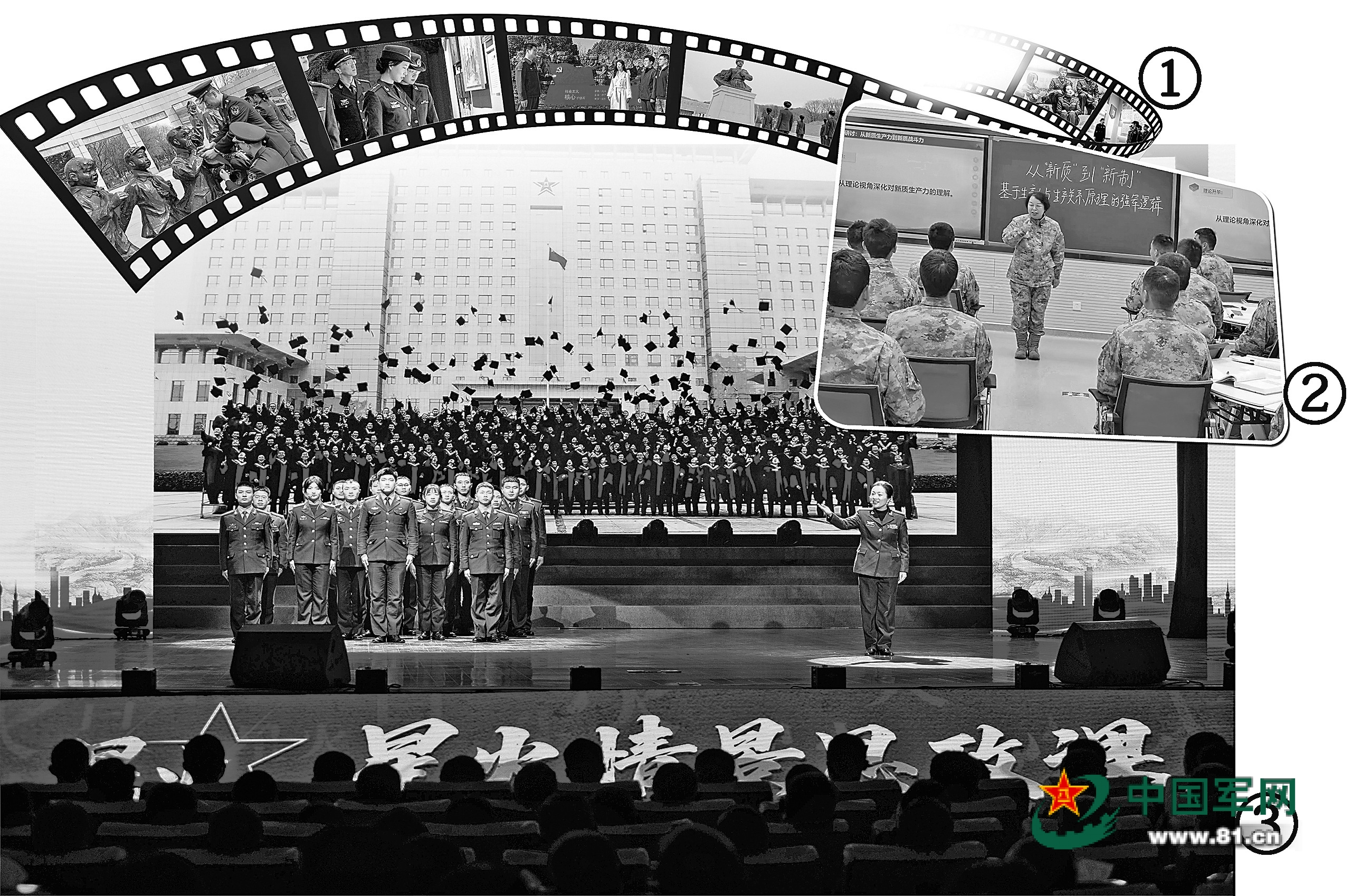 图①:陆军工程大学研究生赴辽宁抚顺、浙江嘉兴等地开展社会调查实践活动。马 兵摄 图②:陆军工程大学教员俞红在为学员授课。朱桁冈摄 图③:陆军工程大学“星火”情景思政课现场。薛飞扬摄 图片制作:牟家辉