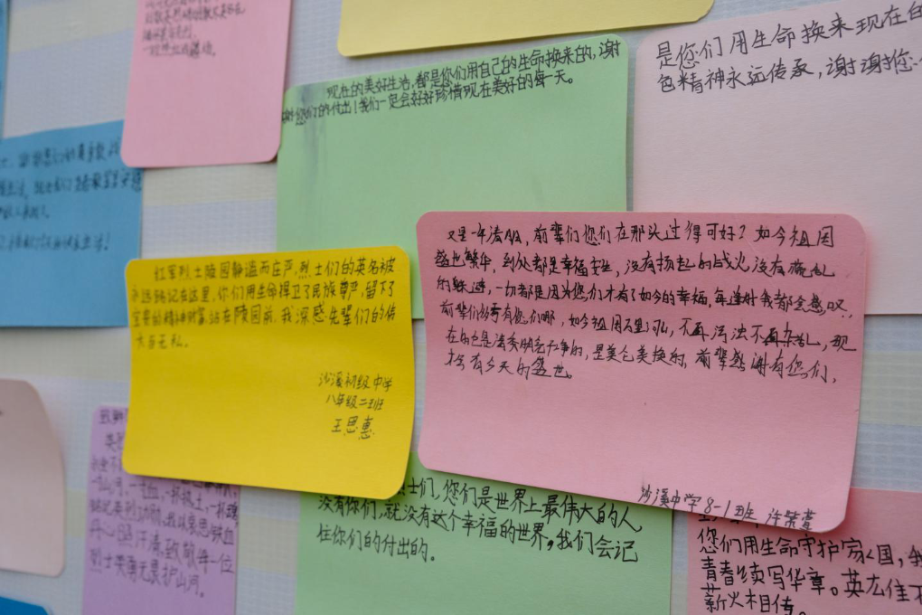 跨越时光,一代人的苦难已经过去。陵园一处,专门摆放着通江县中小学的学生们写给红军英烈的信。孩子们在信中写道:“现在我生活在一个和平的年代,春天去公园看花开,秋天去郊外看落叶。我知道这就是您们梦想中的家园,愿您们安息。”