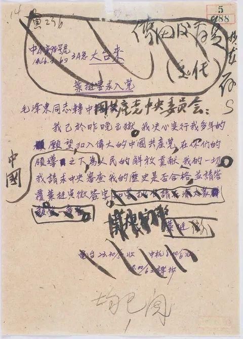 “我已于昨晚出狱……我决心实行我多年的愿望,加入伟大的中国共产党,在你们的领导之下,为中国人民的解放贡献我的一切。”