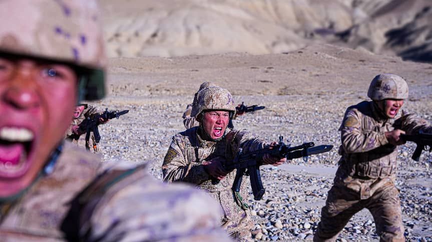官兵在高原进行刺杀训练