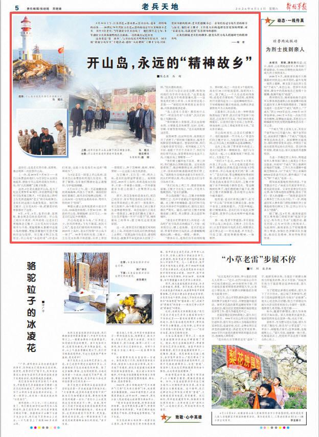 这次,3位老兵重返开山岛,是为了纪念光荣参军50周年,并在清明前夕缅怀守岛英雄王继才。7年前在岛上聆听王仕花讲述她和“老王”的守岛故事后,老兵们对这座小岛愈发惦念。他们和王继才、王仕花夫妇一样,把最美好的青春留在了这里。