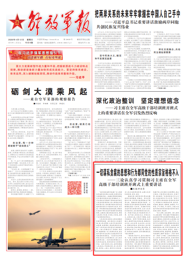 解放军报评论员:一切谋私贪腐的思想和行为都同党的性质宗旨格格不入