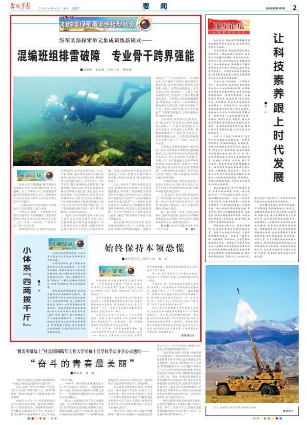 以前,我只负责下水灭雷,上了岸任务就结束。现在,灭雷只是最后一环,我要是只懂潜水,那就真成了“一条腿走路”。第一次混编班组实训的场景,我至今记忆犹新。