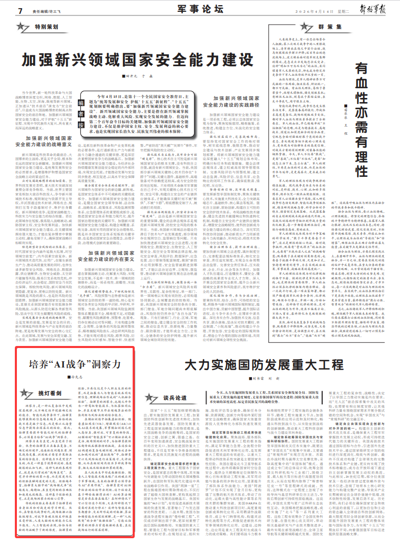 在人机共生中形成数据经验。随着人工智能技术越来越广泛的被应用于军事领域,未来的指挥员必须学会与AI“并肩作战”。指挥员需对AI助手给出的结论作出判断:这个结论是基于哪些数据得出的?AI的算法模型是否存在潜在偏见?在何种情况下可以信任这个判断,又在何种情况下需要对其进行修正?这种与智能系统长期磨合、交互所形成的对数据、算法和模型能力的深刻理解,是一种“人机默契”的全新“数据经验”。它能让指挥员的洞察力穿透数据的表象,直达战场运行的深层逻辑。