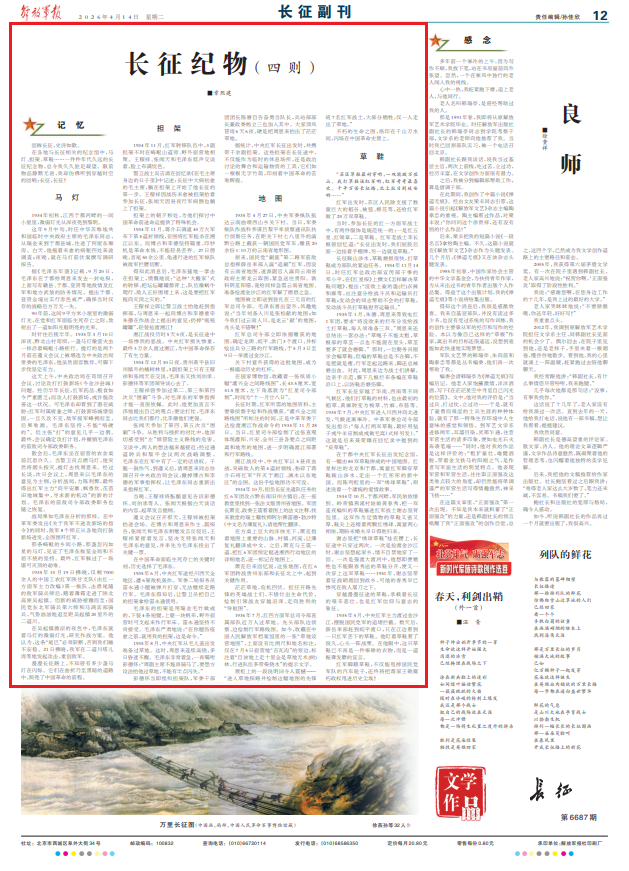 在各地与长征相关的纪念馆中,马灯、担架、草鞋……一件件年代久远的长征纪念物,总令我久久驻足凝望。眼前物品静默无语,我却仿佛听到穿越时空的回响:长征,长征!