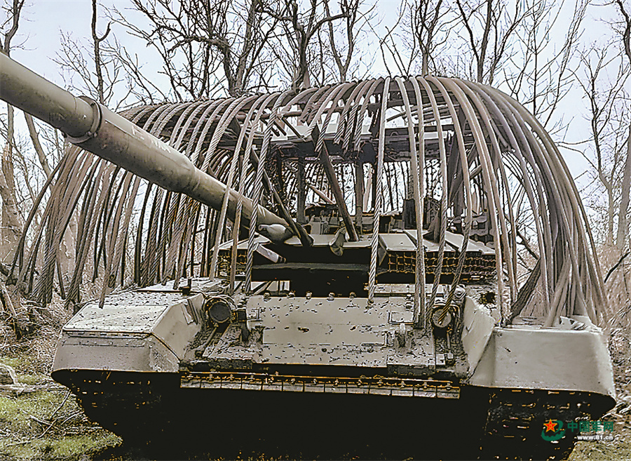 在俄乌冲突中,俄罗斯军队为一些T-80BVM、T-90坦克加装了此类防护装备,乌克兰军队则对M1A1坦克等进行了类似改装。一方面,这种防护装备能够把一些小微型无人机拒于主装甲之外,另一方面还可以借此改变坦克的外形,增加行动隐蔽性。