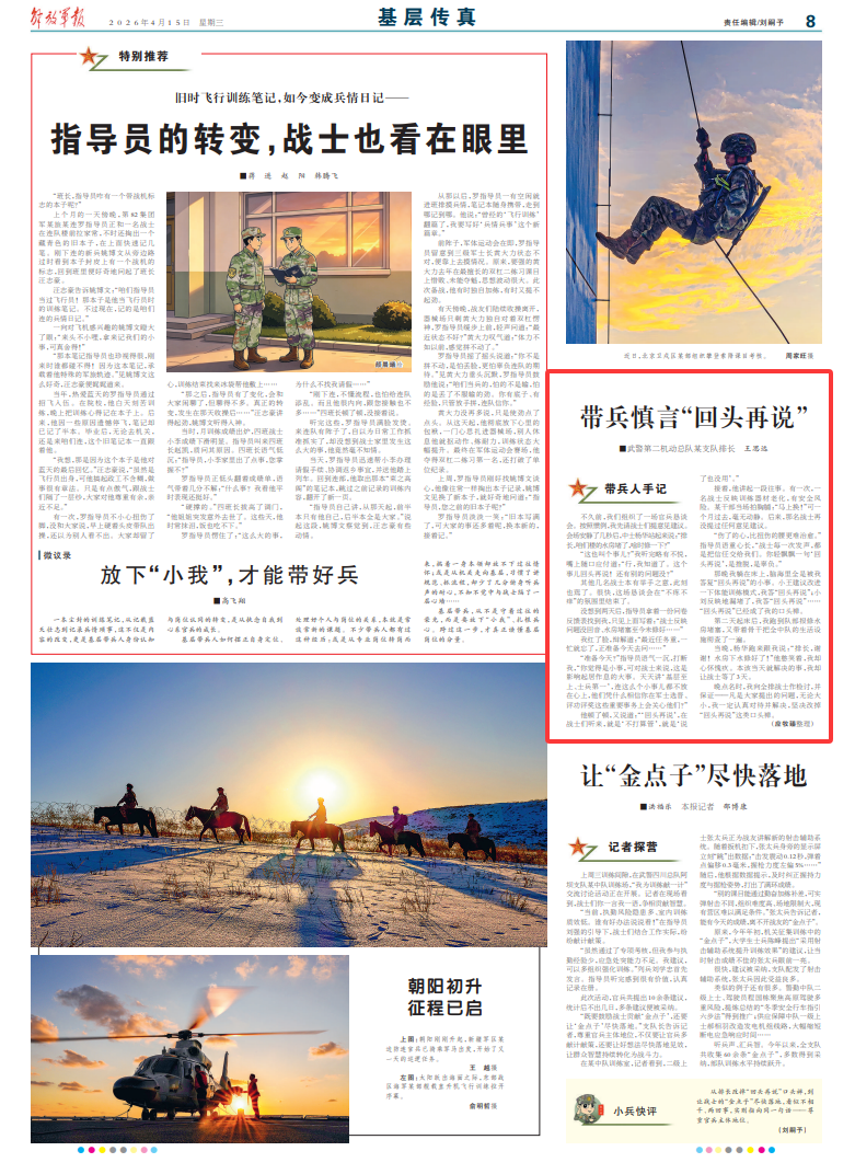 他顿了顿,又说道:“‘回头再说’,在战士们听来,就是‘不打算管’,就是‘说了也没用’。”
