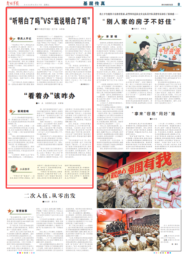 “听明白了吗”“看着办”……这些话,相信不少带兵人都说过。由于说得多了,有时甚至可能变成了口头禅。初听之下,这些话好像没问题,但细细琢磨,其实不然。