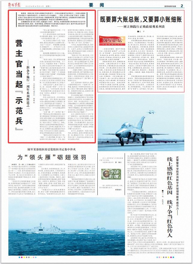 编者按 新修订的《中国人民解放军内务条令》、《中国人民解放军纪律条令》、《中国人民解放军队列条令》(统称共同条令),自2025年4月1日起施行。一年来,全军深入开展“学条令、守规矩、正秩序”活动,组织官兵学习基本内容、掌握精神实质,营造严格军规军纪、正规部队秩序浓厚氛围,切实把条令规范内化为政治信念和道德修养、外化为行为准则和行动自觉。