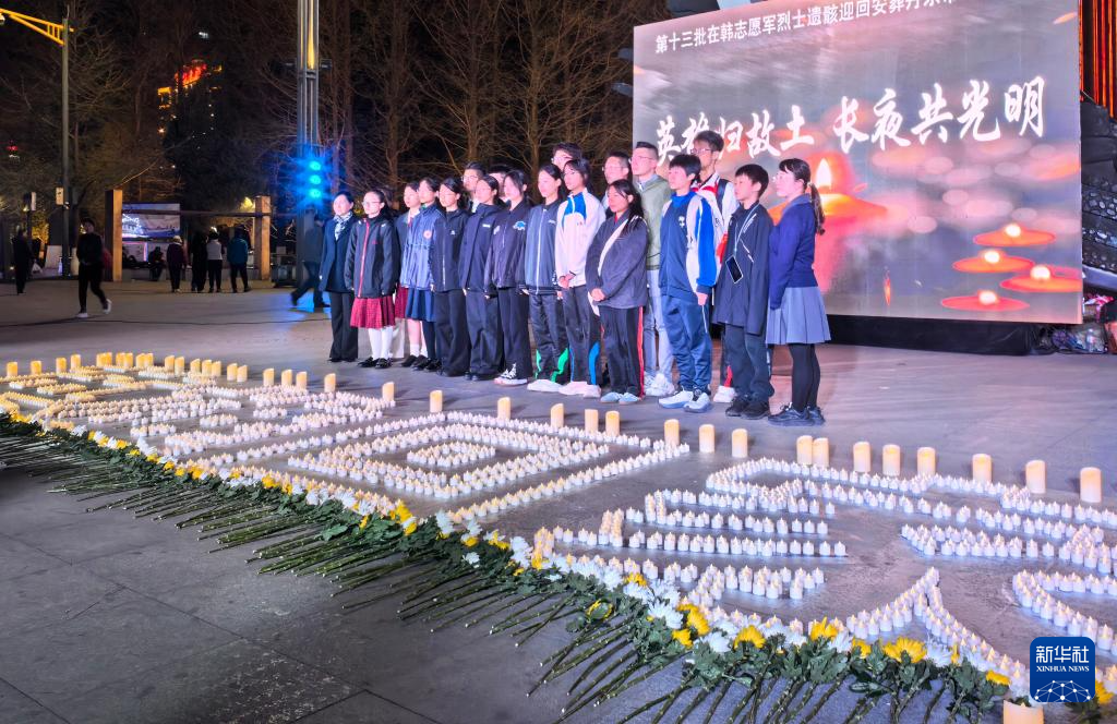 20日晚上,青少年代表在鸭绿江边的和平广场与丹东社会各界人士一道举行了烛光追思活动。以烛光表意、以歌声寄情,以鲜花敬怀,深切缅怀抗美援朝志愿军烈士,共同期盼英雄跨越山海,荣归故里。