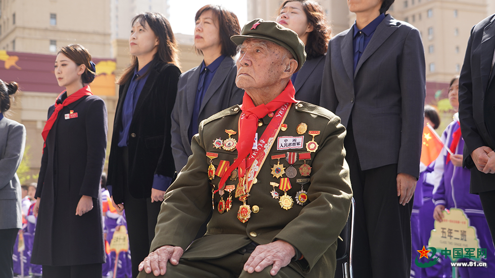 抗美援朝老兵李维波在和平一校长白岛第一小学参加展览开幕活动。