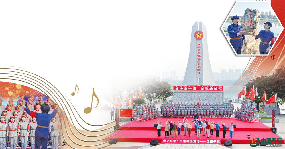 图②:2021年1月,于都县军地联合开展“奋斗百年路 启航新征程”主题活动。图为长征源合唱团在中央红军长征出发纪念碑前倾情演唱。刘为荣摄
