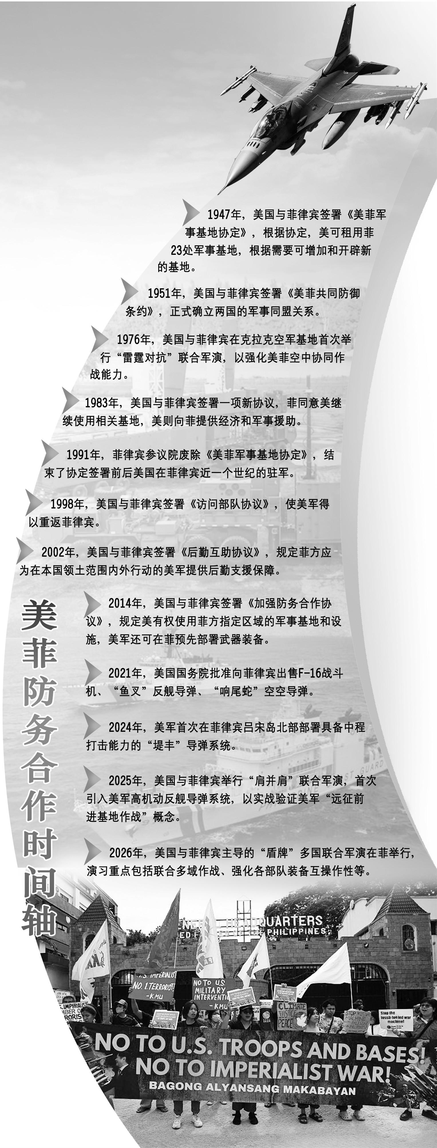 需要注意的是,达沃基地并不是孤立项目。自2022年马科斯政府恢复对美防务合作以来,美军正系统性地将菲律宾塑造为前沿作战枢纽,包括在菲新增4处军事基地、部署“堤丰”中程导弹系统、建设大型弹药预置仓库、频繁组织联合军演等。种种迹象表明,美欲将菲律宾打造为遏制战略竞争对手的前沿堡垒。