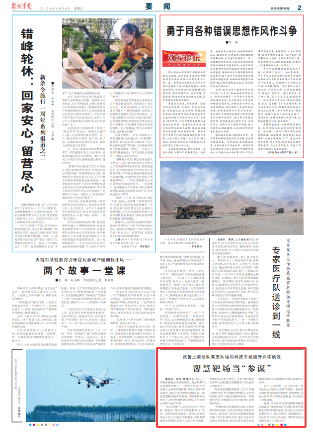 解放军报讯 张力、鲁帅报道:春日,一场轻武器射击训练在武警上海总队某支队智慧靶场展开。一轮射击结束,中士王顺点击身旁终端屏幕,弹着点分布、弹道轨迹、偏差分析等数据随即呈现。依托智慧靶场提供的数据,王顺在教练员指导下,针对性调整射击动作,在后续射击训练中进步明显。