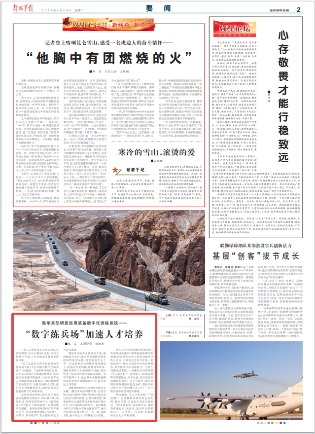 “有了这套自主研发的装备数字化训练系统,专业训练在数字空间实现了‘加速跑’。”该部领导告诉记者,近年来,试训任务保障逐渐增多、实战化训练难度不断提升,对高素质专业人才的需求越来越紧迫。他们紧跟数字化转型步伐,发挥自身技术优势,组织专业力量集智攻关,成功研发出这套装备数字化训练系统。