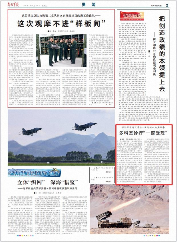 据了解,该院还将服务延伸至官兵就医全场景、全周期,从提前预约诊疗、特殊病例专家对接,到出院随访、康复指导,形成全流程兜底保障。他们还发挥专家团队、医疗设备等方面优势,遴选战救科、体检科、口腔科等专家组成医疗队,定期深入偏远点位、驻训一线开展巡诊服务,不仅为官兵送医送药,还系统收集基层常见病症案例,建立官兵健康数据库,持续提升专科诊疗、伤防宣教、健康指导的针对性和精准度。