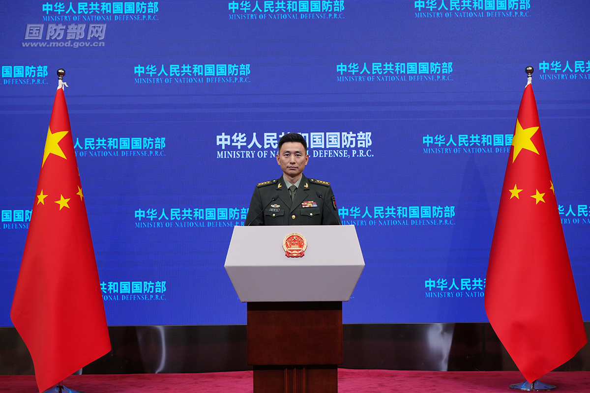 4月30日下午,国防部举行例行记者会,国防部新闻发言人张晓刚大校答记者问。