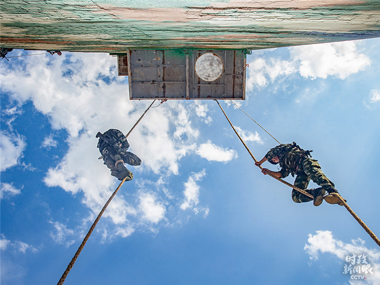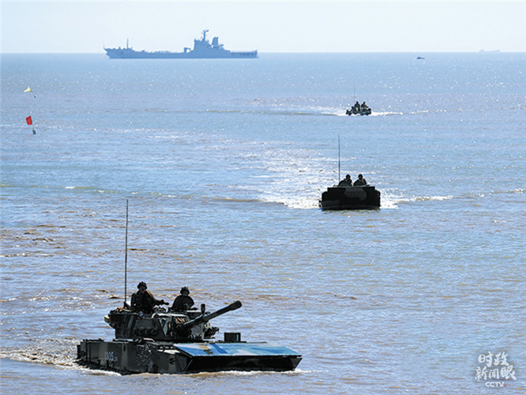 △8月14日,东部战区陆军某旅与海军某登陆舰支队联合开展海上课目训练,提升两栖作战能力。