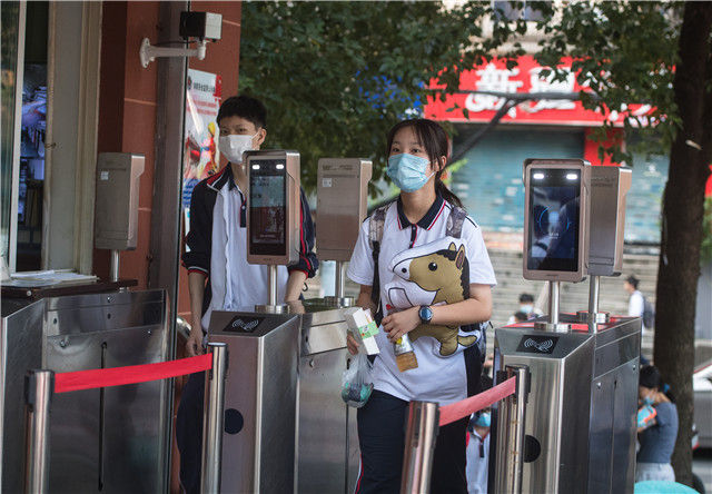 9月1日,武汉中学的学生进入校园。新华社记者 肖艺九 摄