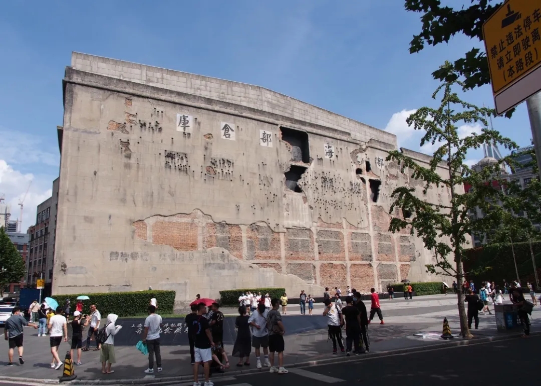 8月25日拍摄的上海四行仓库西墙,如今这里也是四行仓库抗战纪念馆向公众展示的重要组成部分。新华社记者 任珑 摄