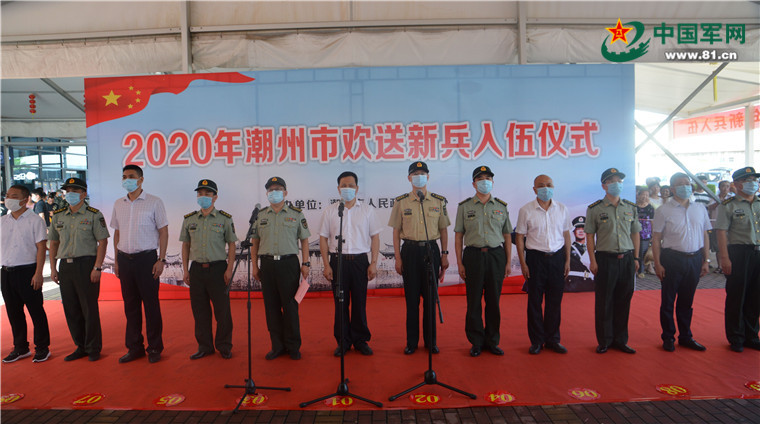 在欢送仪式上,姚登峰代表潮州军分区和市征兵办对大家表示热烈祝贺,祝贺他们通过严格体检和政治考核,批准入伍,成为一名光荣的中国人民解放军战士,担负巩固国防、保家卫国的神圣使命。