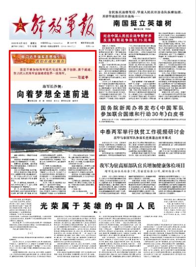 “坚定不移加快海军现代化进程,善于创新,勇于超越,努力把人民海军全面建成世界一流海军。”统帅的战略擘画,正在推动人民海军战斗力建设发生脱胎换骨的变化,指引着海军将士迈向更加壮阔的征程。