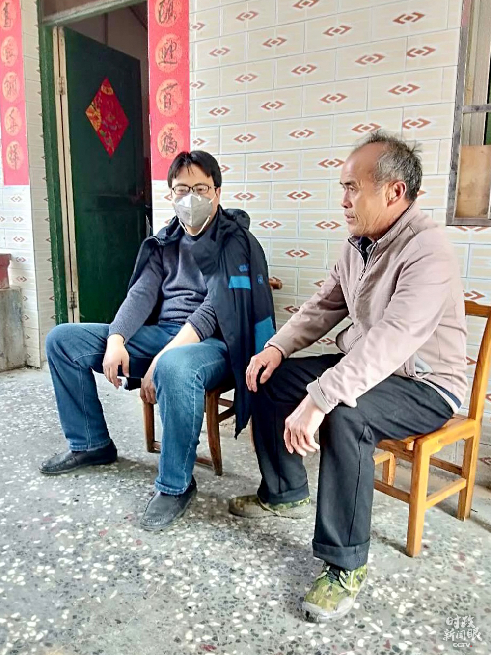 △汝城县沙洲村扶贫工作队队长、村第一书记黄飞(左)看望贫困户。(总台央视记者贾林提供)