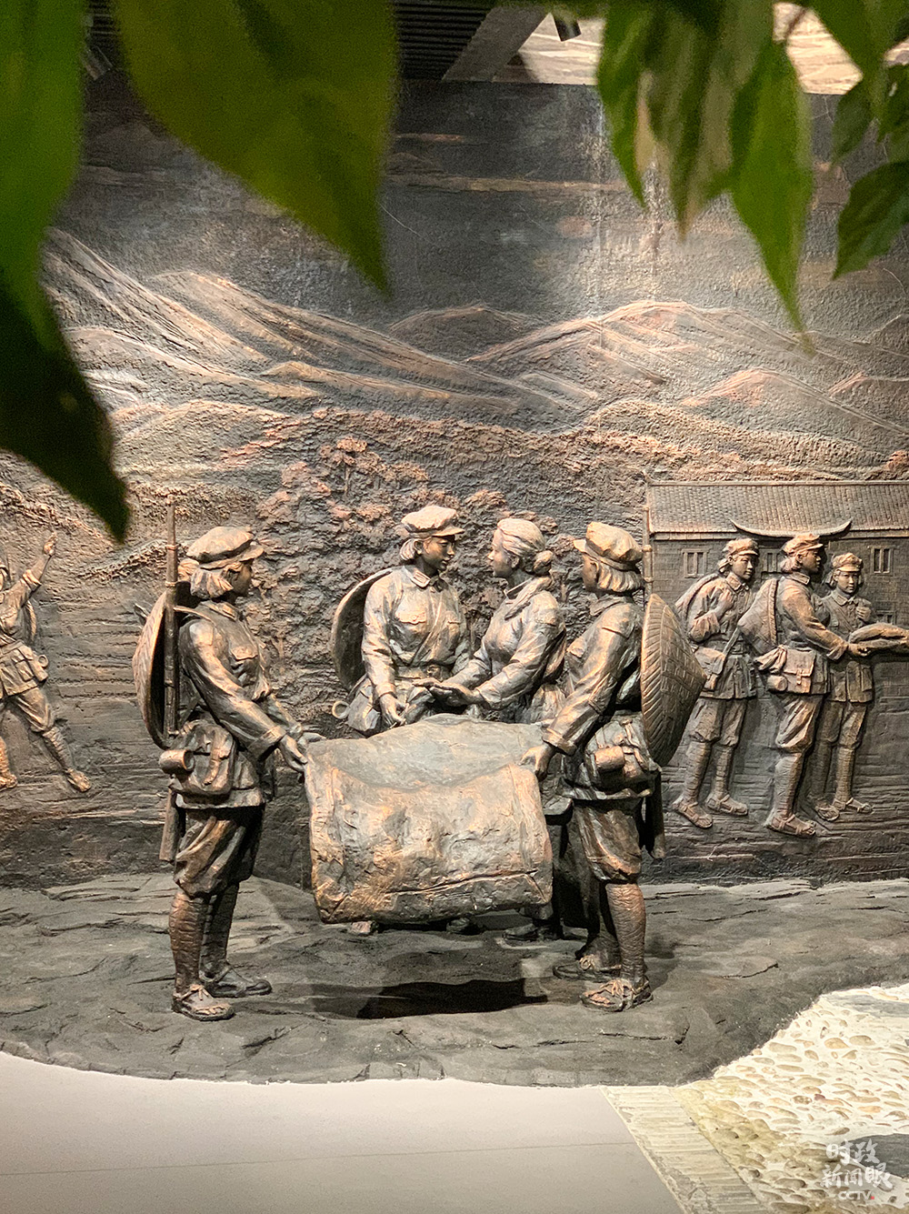 △“半条被子的温暖”专题陈列馆内的主题雕塑。(总台央视记者邢彬拍摄)